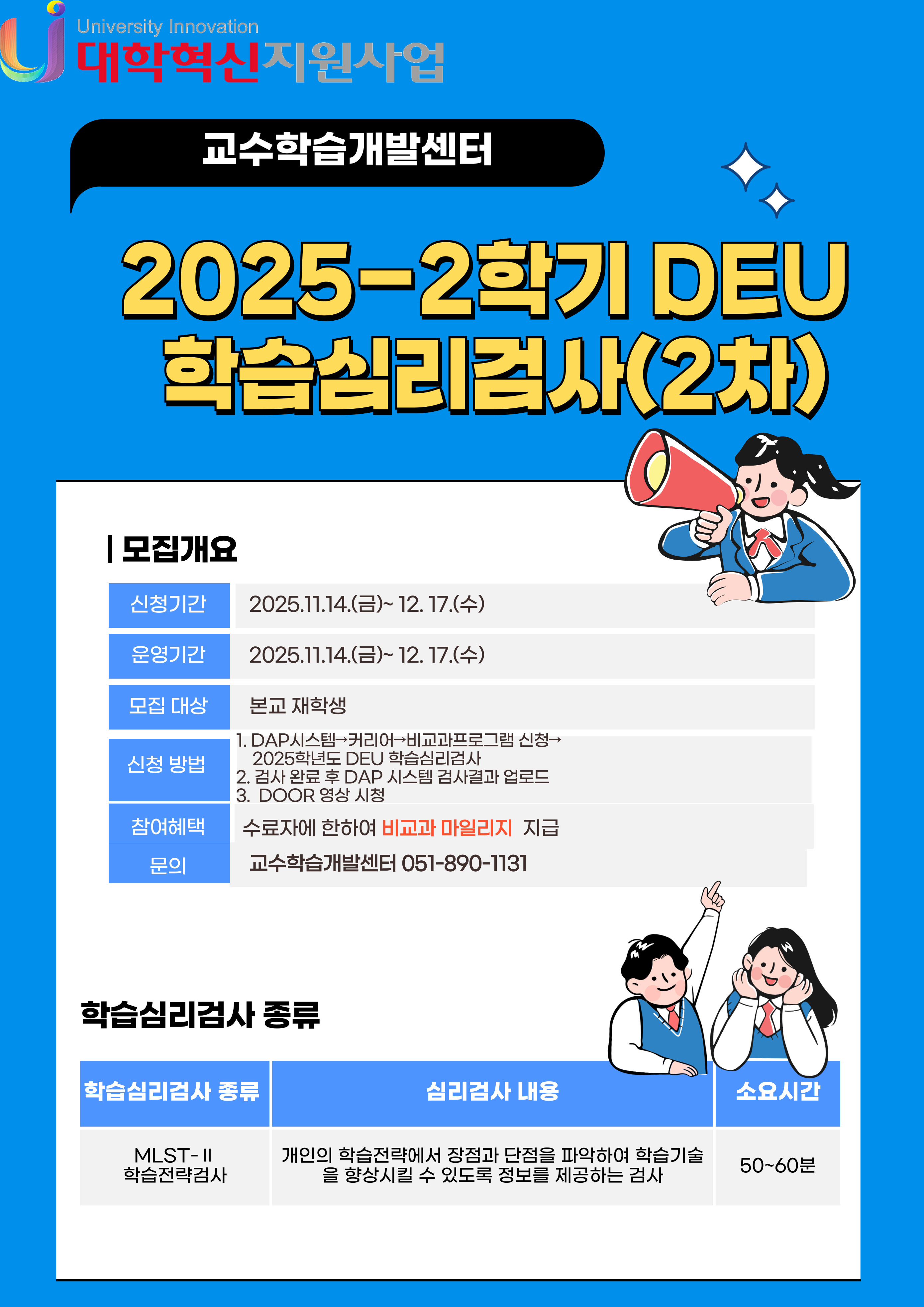 [대학혁신지원사업] 2025-2학기 DEU 학습심리검사 신청 안내(2차)