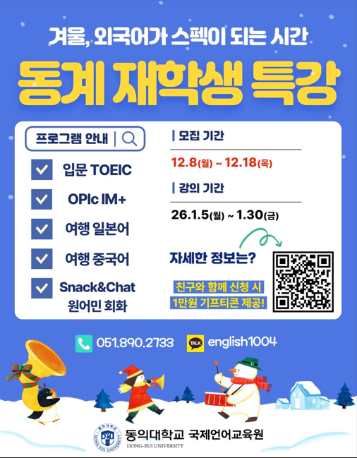 2025학년도 동계 외국어 특강 프로그램 수강생 모집 안내