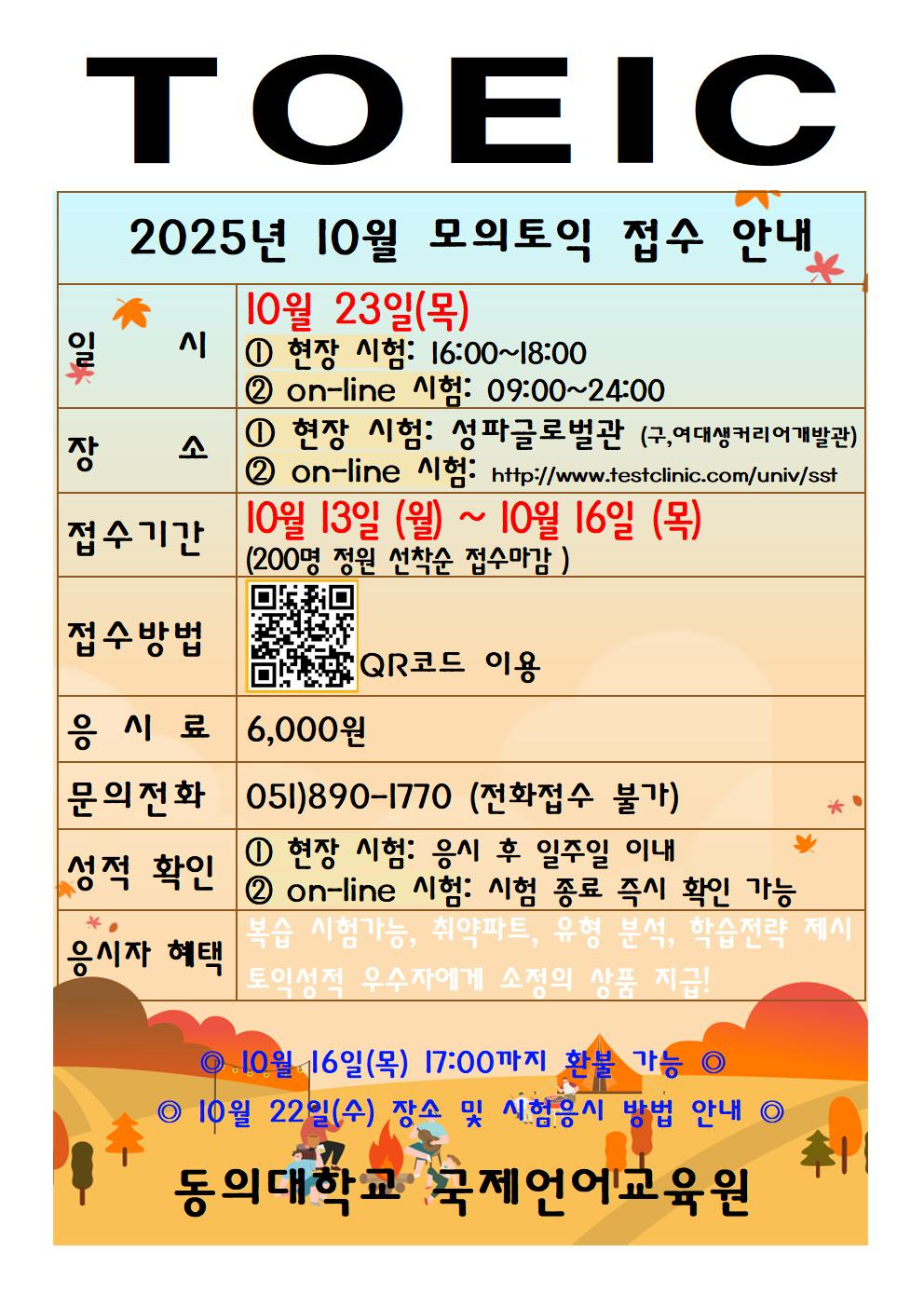 [국제언어교육원] 2025학년도 10월 모의토익 접수안내